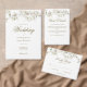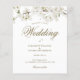Hübsche Blütenblütenzauber mit einer zarten Frühlingsblüte, die Ihre Hochzeitsdetails in eleganter Goldschrift umrahmt. Personalisieren Sie Ihre speziellen Veranstaltungsdetails. Auf der Rückseite sind die weißen Blütenblätter verteilt. Entwickelt von Thisisnotme©
