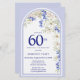 Das elegante 60. Geburtstagsgeschenk-Template verfügt über einen Boho-Blumenbogen, der aus weißen Gänseblümchen und blauen Wildblumen besteht. Dieser Artikel ist Teil der Sammlung Boho Arch Blue und White Floral.