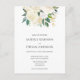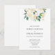 Eine elegante Hochzeitseinladung mit einem Arrangement aus weißen Blume und Grün. Bitte, es ist eine Einladung POSTCARD, es enthält keine Umschläge.