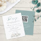 Eine günstige BUDGET-Alternative für eine Größe von 4,5 x 5,6 Zoll, das Gewicht von 110 lbs ist ähnlich dick wie eine Postkarte (es ist jedoch nicht geeignet, als Postkarte zu verwenden). BITTE BEACHTEN SIE, DASS ES EINE pro Blatt gibt. Budget White Pumpkins QR Code Hochzeit RSVP. Geben Sie Ihren Gästen die Möglichkeit, mit diesem minimalistischen Herbstdesign mit weißen Blumen, Kürbissen und aquamarinem Blattwerk zu antworten. UAWG ist in einem modernen Set Skript und leicht personalisieren die Erholung des Textes. Damit Ihre Gäste bequem antworten können, indem Sie entweder diese an Sie zurücksenden oder auch online antworten. Fügen Sie Ihren QR-Code zu Ihrer Antwort-Seite auf Ihrer Hochzeitswebsite auf der Rückseite, indem Sie den QR-Code auf dem Beispiel. Sie können QR-Codes kostenlos online erstellen. Suchen Sie einfach nach "QR Code Creator" und viele Optionen werden kostenlos erstellt.