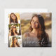 Die preisgünstige und elegante Ankündigung des Abschlusses mit dem Foto des Absolventen überlagert mit einem Streifen von drei kleineren quadratischen Fotos, "Absolvent" in einer modernen weißen Schrift und ihren Namen und Klasse Jahr in schlicht weißen Typografie.