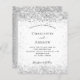 Ein weißer Hintergrund auf der Vorderseite. Dekoriert mit Imitaten silbernen Glitzer. Personalisieren und fügen Sie Ihre Namen und Party-Details. Zurück: Imitate silber Hintergrund und Glitzer.