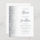 Die links Kulisse dieser eleganten, modernen Hochzeitseinladung besticht durch eine silberne Imitat-Glitzer-Grenze. Der anpassbare Text kombiniert graues Skript und serifenlose Schriftart auf weißem Hintergrund. Die Rückseite bietet Platz für Hochzeitsdetails auf einem soliden, weißen Hintergrund, zusammen mit einem QR-Code können Gäste scannen, um Ihre Website und UAWG zu besuchen, was die Kosten für den Druck und Versand separater RSVP-Karten rette.