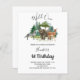 Wild One, bewaldete Geburtstagsparty. Ein weißer Hintergrund mit wasserfarbenen Wald- und Waldtieren, Wolf, Bär und Reh. Personalisieren und fügen Sie einen Namen und Party-Details hinzu.