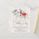 Rot-weiße Blume in den Aquarellen sind in sanften, grünen Blätter und Blättern eingebettet. Schneeflocken aus Gold sorgen für eine festliche Touch. Ein elegantes, einfaches und modernes Drehbuch verleiht ihm eine offene und luftige Atmosphäre. Auf der Rückseite des Hotels befindet sich ein Blumenkochett mit einer Touch goldener Schneeflocken.