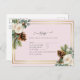 Wunderschöne weiße Rosen, Eukalyptus-Blätter, rustikale Kiefernfüße und ein goldener Rahmen auf diesem Winterhochzeitsartikel, der Teil einer größeren Kollektion ist, die Einladungen für Hochzeiten beinhaltet, speichern Sie die Daten, RSVPs, Etiketten, Geschenke, Schreibwaren und mehr. Für eine KOSTENLOSE Winterhochzeitplanung besuchen Sie bitte weddingdesignchic.com.