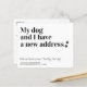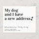 Mein Hund und ich haben eine neue Adresse! Lass deinem besten Freund, dass du mit dieser niedlichen und lustigen Hunde bewegenden Ankündigungskarte deinen Umzug ankündigst. Personalisieren Sie Namen mit dem Hund und Ihre neue Adresse. Diese preisgünstigen Hundeschilder Postkarten müssen als übergroße Postkarten verschickt werden, sodass es zu normalen Portogebühren kommen kann, aber sie brauchen keinen Umschlag oder eine Rücksendeanschrift. Diese neue Adressenkarte ist ein Muss für alle Hundemütter, Hundedads und Hundefreunde! COPYRIGHT © 2020 Judy Burrows, Black Dog Art - Alle Rechte vorbehalten!! COPYRIGHT © 2020 Judy Burrows, Black Dog Art - Alle Rechte vorbehalten. Budget Wir haben meinen Hund und ich Hund bewegen Karte Ankündigung verschoben Postkarte