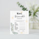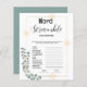 Unterhalten Sie Ihre Gäste mit diesem lustigen gemeinsamen Brautparty Game- Word Scramble. Bridal Word Scramble ist ein einfaches Brautparty-Spiel, das Gäste jeden Alters genießen wird. Gäste- Spieler versuchen, die Wörter der Hochzeit so schnell wie möglich zu entschlüsseln. Die Karte wird als Vorlage erstellt, um vorhandene "verworrene Wörter" zu ändern. Die links Eckgrün wird in leuchtendes Rechteck mit graugrauem Hintergrund eingebettet. Einfach und elegant. Dieses Brautparty-Game-Template kombiniert zwei verschiedene Schriftart für ein dynamischeres Aussehen. Falls Sie Hilfe beim Design benötigen, können Sie sich jederzeit mit dem Shop in Verbindung setzen.