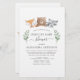 Budget Woodland Animals - Bären, Racoon, Fox Eukalyptus Greenery Botanical Watercolor Spring Gender Neutral Baby Boy oder Baby Girl Baby Drive By Baby Shower in einer Ferne Einladungen auf weißem Hintergrund - beinhaltet schöne und elegante Drehtypografie mit modernen botanischen Blätter und Grün für die besondere Mutter zu feiern.