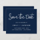 Budget Navy Blue Modern und elegante Minimalistische Hand Lettered Script Save the Date Wedding Postcard. Die Save the Date einladende Einladungskarte beinhaltet eine moderne, handgeschriebene Schrifttypografie mit einem schicken und schlichten Design, mit dem Sie Ihre individuelle Verlobung-Fotografie hinzufügen können.