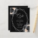 Diese elegante moderne Hochzeit bewahrt die Dattelkarte mit einem silbernen geometrischen Rahmen, der mit Pfirsich, schwarzen und silbernen Blumensträußen auf schwarzem Hintergrund dekoriert ist. Der anpassbare Text kombiniert silbergraue, weißliche Handschrift, Kupferplatte und kursiven Schriftart. Die Rückseite ist schwarz.
