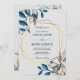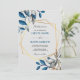 Eine elegante Hochzeitseinladung mit staubigen blauen und grauen Ästen, in einem goldenen Rahmen, umgeben von eleganten Ästen. Vielen Dank, dass Sie folgen, wäre ich dankbar, wenn ich Teil Ihrer wunderbaren Hochzeit wäre.