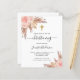 Ein weißer Hintergrund. Die Einrichtung besteht aus Rose-Gold und Rosa-Blumen, Rose, Pampas-Gras und einem goldenen Kreuz. Personalisieren und fügen Sie einen Namen und Details.