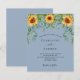 Mit Sonnenblumen geschmückt und mit Eukalyptus-Pflanzen geschmückt. Dusty blauer Hintergrund. Personalisieren und fügen Sie Ihre Namen und Party-Details.