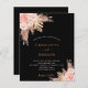 Für eine moderne Hochzeit im bohischen Stil. Ein stilvoller schwarzer Hintergrund. Die Einrichtung ist mit Rose-Gold und rosa Blumen, Rose und Pampas-Gras dekoriert. Personalisieren und hinzufügen von Namen und Details.