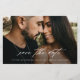 Ein romantisches, schlichtes Hochzeitsfest-Foto, Save the Date mit einem wunderschönen Script-Kalligraphie-Overlay auf der Vorderseite. Die Rückseite hat eine 2 Foto Collage mit Hochzeitswebsite. Klicken Sie auf die Schaltfläche Bearbeiten, um dieses Design anzupassen.
