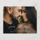 Ein romantisches, schlichtes Hochzeitsfest-Foto, Save the Date mit einem wunderschönen Script-Kalligraphie-Overlay auf der Vorderseite. Die Rückseite hat eine 2 Foto Collage mit Hochzeitswebsite. Klicken Sie auf die Schaltfläche Bearbeiten, um dieses Design anzupassen.