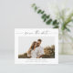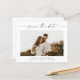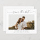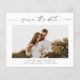 Ein elegantes Skript-Foto Save the Date mit horizontalem Foto und minimalem Text. Klicken Sie auf die Schaltfläche Personalisieren, um dieses Design anzupassen.
