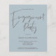 Eine günstige BUDGET-Alternative für eine kleinere Größe von 4,5 x 5,6 Zoll, die ein Gewicht von 110 lbs hat, die ähnlich dick ist wie eine Postkarte (sie ist jedoch nicht als Postkarte geeignet). BITTE BEACHTEN SIE, DASS ES EINE Einladung pro Blatt gibt. Handgeschriebenes Script Engagement Party Dusty Blue Invitation Zeitgenössisches minimalistisches Design mit dem Hauptheader Engagement Party in einem dunkelbraunen Set stylish Skript und die Erholung des Textes können Sie leicht personalisieren. Sie können auch die Farbe und den Schriftart des bearbeitbaren Textes ändern, wenn Sie dies wünschen, indem Sie die Option Weitere Einstellungen anklicken.