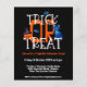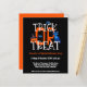 Trick oder behandeln Halloween-Party Black Einladung. Ein Preis SMALLER 4,5" x 5,6" Alternative. Erhältlich in einem SEMI GLOSS 110lb CARD STOCK, der die Standardoption ist (empfohlen für Einladungen, ähnlich der Dicke einer Postkarte), ODER einem SATIN FINISH 80 lb THINNER PAPER STOCK (ideal für Gehäuse). Umschläge sind optional und etwas größer als die Kartengröße. Laden Sie Ihre Freunde zu einem Spooky Halloween-Party und Trick and Leckerei Abend mit dieser unheimlichen Einladung ein! Die Haupt-Kopftypografie ist Set in Orange und Weiß und in einem funky Skript mit Spinnennetzmotiven und einem Kürbis in einer Hexe, die Hut, Katze und Fledermäuse ergänzen die Lustigkeit! Auf der Rückseite ist eine koordinierende Orange. Der Text mit den Details kann leicht personalisiert werden, und Sie können auch die Farbe dieses Textes und die Hintergrundfarben auf der Vorder- und Rückseite ändern, indem Sie auf Weitere Einstellungen klicken.