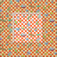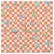 Ein Musterzeichnen von budgies in niedlicher manga Art mit orange Schachbrettmuster für den Hintergrund. Aufmachung vieler budgie Veränderungsfarben: grün, gelb, weiß, blau, Veilchen und Malvenfarbe.