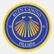 Traditionelles Scallop oder Cockle Muschel Motiv und Buen Camino Pilgrim Text in blau und gelb. Für Ihre Pilgerreise auf dem Weg zum Jakobsweg, mit einem traditionellen Scallop-Muschel-Motiv. Fügen Sie einfach Ihren Aminotext hinzu und passen Sie die Krümmung bei Bedarf an.