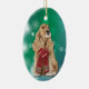 Auf der Vorderseite dieses Holiday-Ornament ist ein Bild eines bufffarbenen englischen Cocker Spaniel Hundes, der einen roten und weißen Winterschal trägt. Das Bild unterscheidet sich von einem Gradientengrün und Blau, der einen Hintergrund bildet. Die Rückseite des Ornaments hat den gleichen Hintergrund mit dem eigenen weißen Text, der derzeit "Frohe Weihnachten glücklich Neues Jahr" und das Datum. Niedlich für jeden, vor allem wenn Sie von einem Cocker Spaniel "gehören".