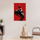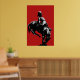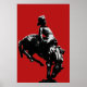 Unser auffallendes Plakatdruck basiert auf einer Statue des Wild West Showman Buffalo Bill Cody in Dennistoun, Glasgow, Schottland, Großbritannien, an allen Orten. Buffalo Bill inszenierte dort 1891 zusammen mit Annie Oakley eine Wild West Show. Bill und sein Pferd sind schwarz silhouettiert und mit einem blass blauen Waschmittel auf einem tiefen roten Hintergrund behandelt.