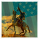Buffalo Bill Cody statue Cody, Wyoming & USA flagg Poster