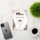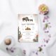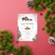 Illustration von Mama und Baby Büffel umgeben von Sternen mit Illustrationen von Bergen und Blumenkaktus.