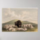Buffalo-Jagd, weiße Wölfe greifen ein Buffalo an Poster