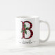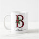 Schwarz und Rot Buffalo Karierte B Monogram Xmas Kaffee Tasse mit einem niedlichen A Anfangsbuchstaben mit einem Büffel karierten Muster und mistletoe Aquarellelement. Die individuelle Name-Vorlage unter dem B Monogramm befindet sich in einem Wirblen handschriftlichen Kalligraphie-Schriftart mit Schnörkeln. Gönnen Sie sich eine durchdachte personalisierte Weihnachtsfeier als Winterurlaubsgeschenk oder kleine Geschenk. Für einen anderen Karo in Monogrammbriefen im Abschnitt "Andere Produkte aus dieser Sammlung" unten.