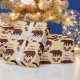 Ein Büffelbär mit rotem und schwarzem Büffeldruck kombiniert mit einer passenden Eichel und Blätter zu einem attraktiven Silhouette auf diesem Holiday Packpapier. Das Trennen der wiederholten Bilder entspricht dem roten Skript, das "Frohe Weihnachten" sagt. Das Muster wird auf einem hellen goldenen Hintergrund platziert, um ein einzigartiges und rustikal aussehendes Weihnachtspapier zu bilden. Schauen Sie sich die passenden Produkte in unserem Shop an.
