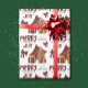 Das wiederholte Muster auf diesem niedlichen Weihnachtsverpackungspapier ist ein Bild eines buffarbenen Cocker Spanierhundes mit einer rot-weißen Weihnachtsmannmütze, mit einem schwarz-roten Büffel karierten Kissen hinter ihm und einem koordinierenden Geschenkpaket mit einem goldenen Band neben ihm. Es gibt auch einen Büffel kariert und den passenden Text, der "JOY" sagt. Stilisierter, roter und schwarzer Büffel karierter Text sagt MERRY CHRISTMAS", und Ihre eigene Unterschrift ist in zwei Bereichen für Sie individuell.
