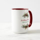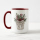 Kiefernzapfen und Kiefernäste in einem Buffalo Karierten Korb, Whimsical Landhaus Weihnachtskaffee Tasse.