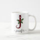Schwarz und Rot Buffalo Karierte J Monogram Xmas Kaffee-Tasse mit einem niedlich A Anfangsbuchstaben mit einem Büffel kariertes Muster und mistletoe Aquarellelement. Die individuelle Name-Vorlage unter dem J Monogramm ist in einem Wirblen handgeschriebenen Kalligraphie-Schriftart mit Schnörkeln. Gönnen Sie sich eine durchdachte personalisierte Weihnachtsfeier als Winterurlaubsgeschenk oder kleine Geschenk. Für einen anderen Karo in Monogrammbriefen im Abschnitt "Andere Produkte aus dieser Sammlung" unten.