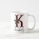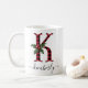 Schwarz und Rot Buffalo Karierte K Monogram Xmas Kaffee Tasse mit einem niedlichen A Anfangsbuchstaben mit einem Büffel kariertes Muster und mistletoe Aquarellelement. Die individuelle Name-Vorlage unter dem K-Monogramm befindet sich in einem Wirblen handschriftlichen Kalligraphie-Schriftart mit Schnörkeln. Gönnen Sie sich eine durchdachte personalisierte Weihnachtsfeier als Winterurlaubsgeschenk oder kleine Geschenk. Für einen anderen Karo in Monogrammbriefen im Abschnitt "Andere Produkte aus dieser Sammlung" unten.