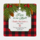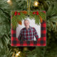 Land, rustikale rote und schwarze Büffel kariert mit Kiefernbäumen, Kegeln und Beeren Denkmal Foto Weihnachtsschmuck (quadratische Form). Die Vorderseite hat ein Foto Ihres Geliebten, das Sie auswechseln können. Der Rücken hat den Namen Ihres geliebten Menschen, Jahre gelebt und ein schönes Vers, das Sie ändern können. Evergreen Äste mit Kiefernzapfen und Beeren gepaart mit ländlichem oder rustikalem Büffel kariertes Muster in Rot und Schwarz.