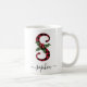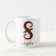 Schwarz und Rot Buffalo Kariert S Monogram Xmas Kaffee Tasse mit einem niedlichen A Anfangsbuchstaben mit einem Büffel karierten Muster und mistletoe Aquarellelement. Die individuelle Name-Vorlage unter dem S Monogramm befindet sich in einem Wirblen handschriftlichen Kalligraphie-Schriftart mit Schnörkeln. Gönnen Sie sich eine durchdachte personalisierte Weihnachtsfeier als Winterurlaubsgeschenk oder kleine Geschenk. Für einen anderen Karo in Monogrammbriefen im Abschnitt "Andere Produkte aus dieser Sammlung" unten.