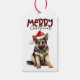 An der Vorderseite dieses Holiday Geschenketiketts befindet sich ein Bild eines bezaubernden deutschen Schäferhirten, der einen rot-weißen Weihnachtshut trägt. Der Büffel-karierte Stiltext oben steht für "Frohe Weihnachten". Die Rückseite des Tags hat mehr stilisierten Text, der "JOY" und ein Büffel karierten Bogen, mit Textfeldern für Sie anpassen. Schauen Sie sich das passende Geschenkpapier in unserem Shop an.