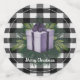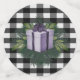Dekorierte Tische und Tresen für Familien treffen sich oder Feiern mit Buffalo Karierten Weihnachtsgeschenk Tisch Confetti. Das Confetti Design besticht durch ein umhülltes Weihnachtsgeschenk, das vor einem Gingham-Hintergrund mit einer üppigen Vegetation geschmückt ist. Mit diesem Design sind auch zusätzliche Geschenk- und Urlaubsartikel erhältlich.
