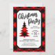 Festliche Weihnachtszeit-Party Einladung mit Büffel karierter Grenze und koordinierender Baum-Silhouette.