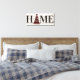Fügen Sie ein wenig rustikalen Bauerncharme zu Ihrem Urlaub Zuhause in dieser Saison mit dieser karierten Buffalo Weihnachtsbaum-Zuhause-Kunst-Leinwand, die einen Hintergrund von weiß gewaschenen Holz aussehen Holzlatten oder Shiplap mit schwarzen Buchstaben für die H M und E mit dem Weihnachtsbaum stehend anstelle des Buchstaben O.