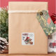 Der Holiday Aufkleber ist mit einem hübschen Drahthaar-Dackel-Hund ausgestattet, der eine rot-weiße Weihnachtsmannmütze trägt und in einem Korbkorb sitzt. Hinter dem Hund befindet sich ein kariertes, rotes und schwarzes Büffel-Kissen, und ein passendes Geschenkpaket liegt neben dem Korb. Buffalo karierte Typografie Paare mit schwarzer Schrift zu sagen "MERRY Christmas", mit "Happy New Year" darunter. Ihre benutzerdefinierte Signatur ist in zwei leicht zu ändernden Textfeldern unterteilt.