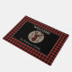 Ein Büffel mit karierter Silhouette ist ein Hirschkopf, der in der Mitte eines Bräunungskreises auf dieser attraktiven Türmatte steht. Gegen schwarze Pfeile sind auf beiden Seiten des Kopfes. Der Kreis wird auf einem schwarzen Hintergrund platziert, der mit einem passenden karierten roten und schwarzen Büffel gerahmt ist. Ihr eigener Text ist in der passenden Farbe über und unter dem Kreis und Hirsch-Bild. Ideal für eine Hütte, oder Zuhause, aber komfortabel in der Zuhause in der Stadt!