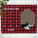 Eine hübsche, süße Monatsdecke mit einer Silhouette aus Babybett und Elche auf einem trendigen Büffel-Karo-Hintergrund