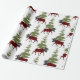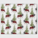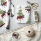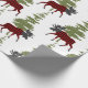 Bulle Elche mit rotem und schwarzem Tartan durch grüne Kiefernbäume. Weißer Hintergrund, nach Belieben anpassen.