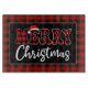 Buffalo Plaid Christmas Greeting with Santa Hat Accent Cutting Board