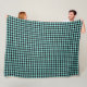 Fleece blanket is shown in a lovely black and aqua buffalo plaid.