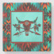 Dies ist ein einzigartiger "One of a Kind" Südwest Buffalo Skull and Arrows Stone Untersetzer! Es verfügt über einen amerikanischen Buffalo-Skull und Pfeile auf einem türkisfarbenen Hintergrund...Umgeben von einer Südwestgrenze in Türkis, Orange & Schwarz! Original Art Design von Künstler Kerry Miller.